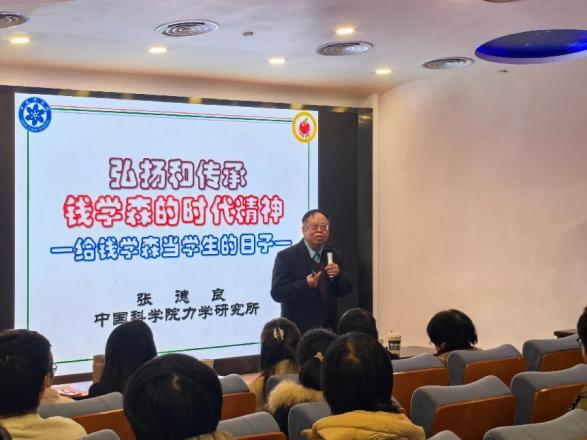 钱学森时代精神,传承其宝贵学术思想与育人智慧,在“钱学森日”即将到来之际,1210航天学院文治书院师生联合党支部举行“传扬钱学森时代精神”主题党日,组织成员参与了由钱学森图书馆主办的“弘扬和传承钱学森的时代精神——给钱学森当学生的日子”主题讲座。活动特邀师从钱学森先生与郭永怀先生的中国科学院力学研究所研究员、中国科学院大学教授张德良担任主讲生动再现了钱学森的伟大建设事业与治学育人场景,为在场师生带来了一场深刻的思想启迪