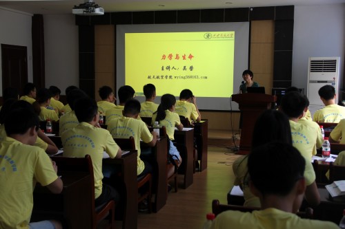 之后,院长申胜平教授介绍了学校和学院的详细情况。他从古城西安的历史背景讲起,谈到学校的办学定位与目标,向同学们详细讲解了学院发展历史、发展思路与目标、人才培养、师资队伍建设情况以及发展远景,勉励营员们明确方向、刻苦努力、培养学术兴趣。