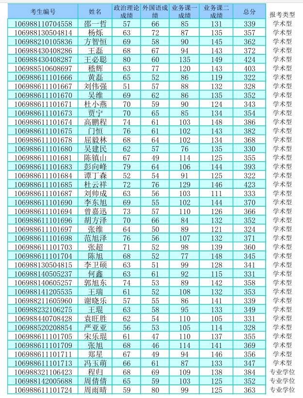上线考生复试名单如下: